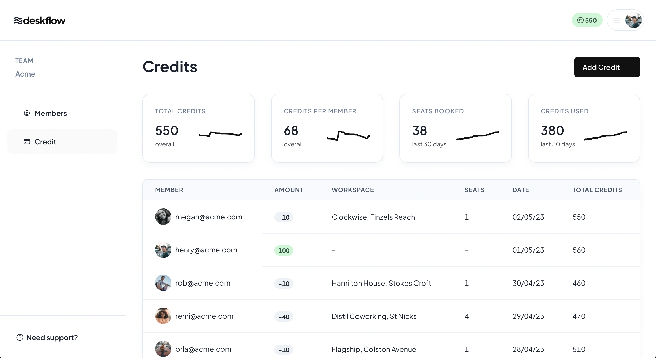 Our dashboard makes managing credits a breeze, while giving you key insights into your team's usage.